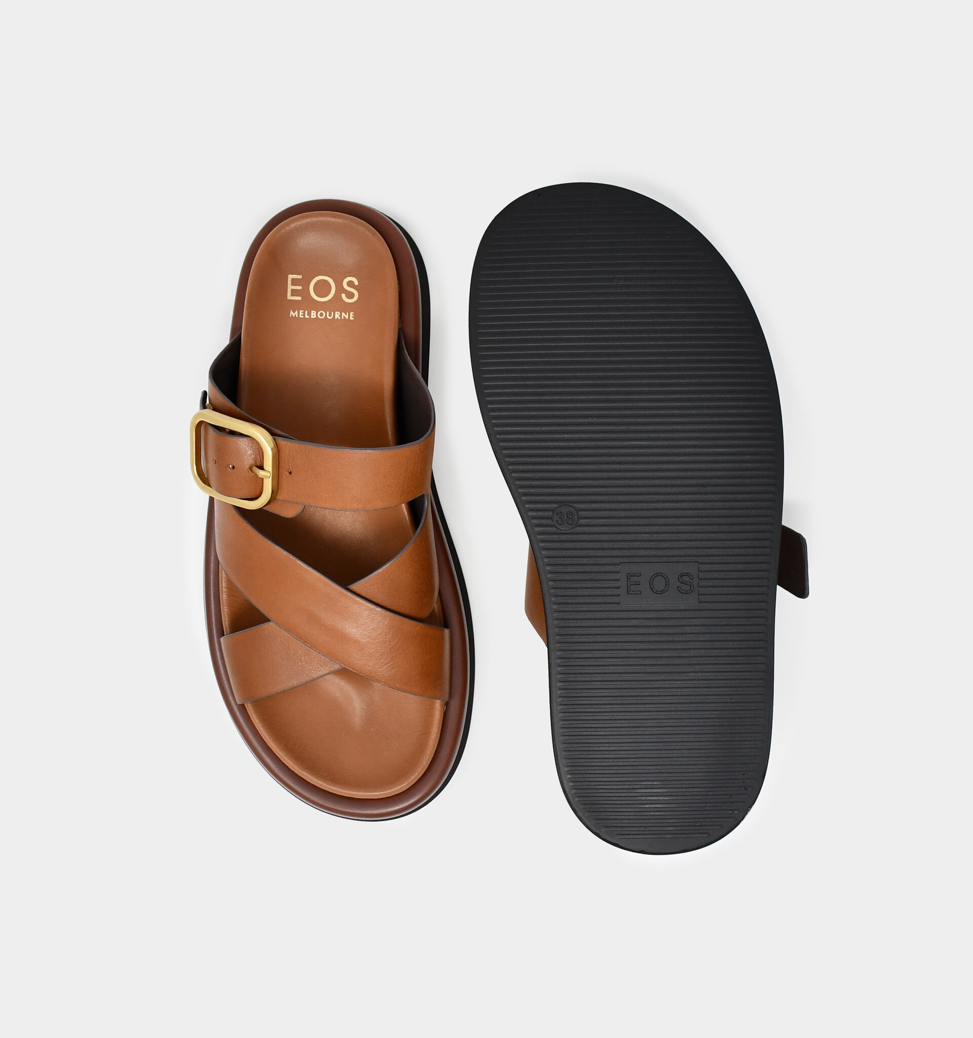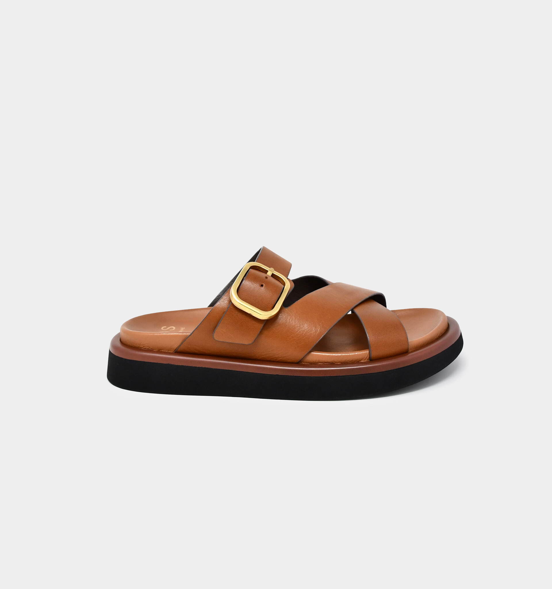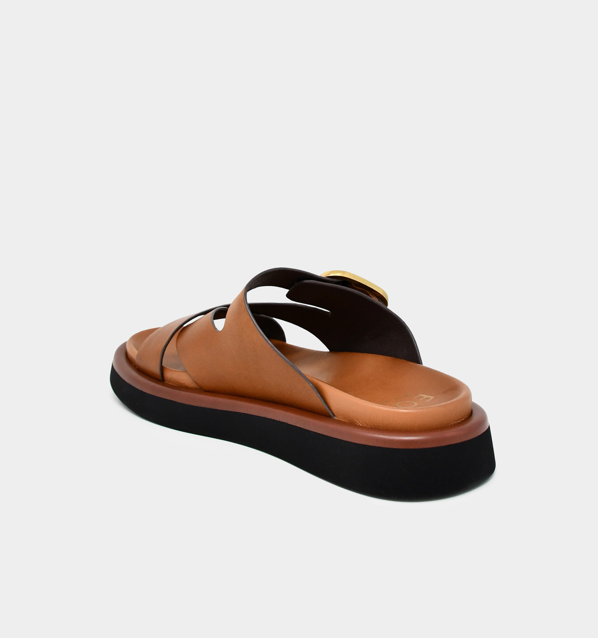 - Wide straps made with soft Italian leather hug the foot