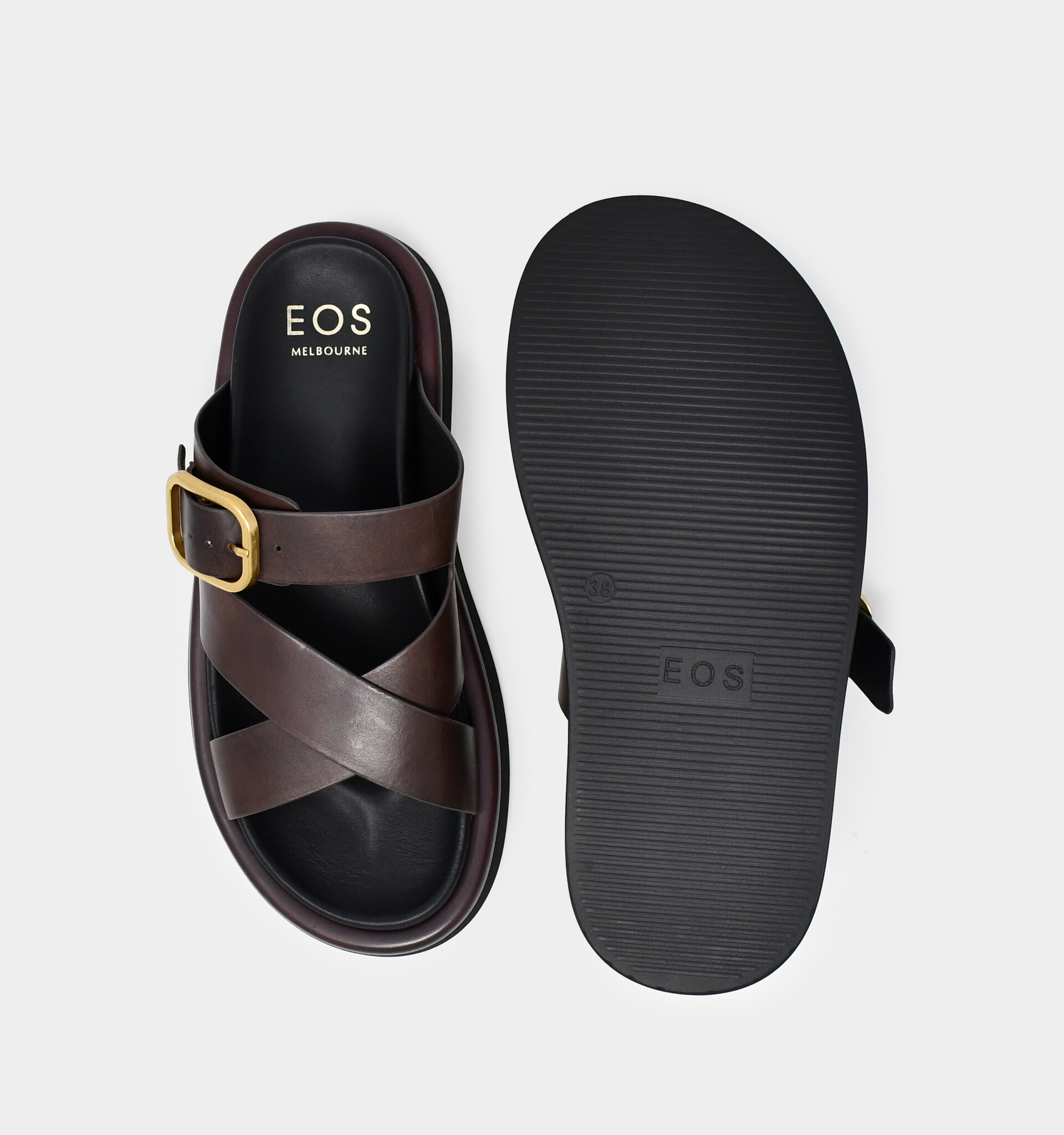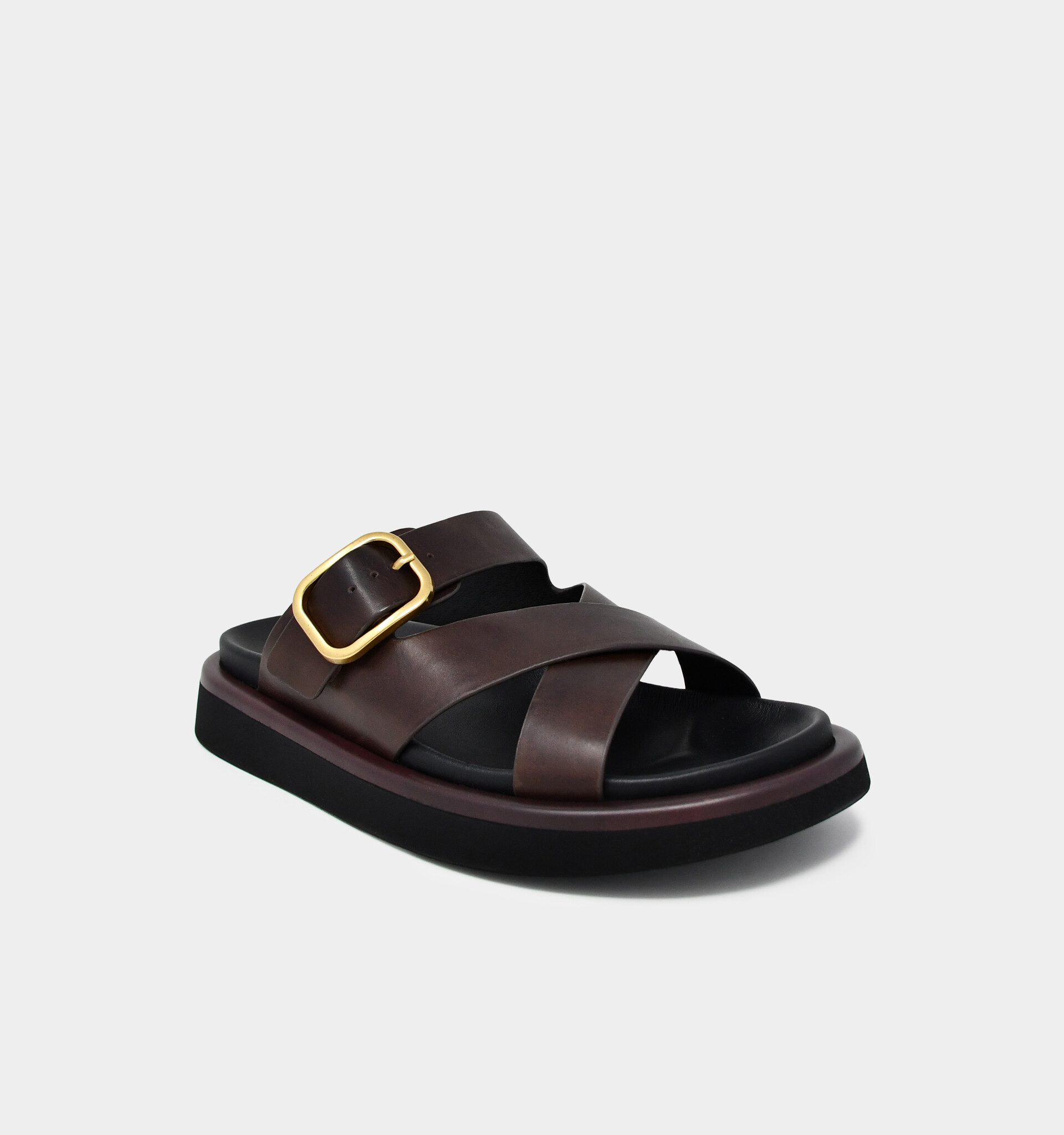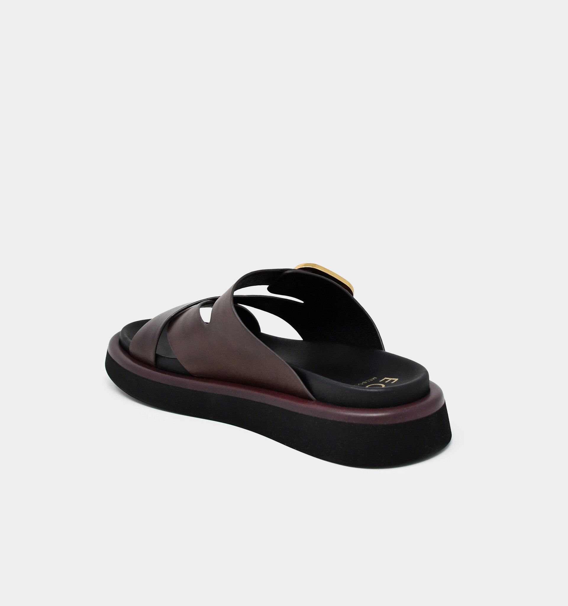 - Wide straps made with soft Italian leather hug the foot