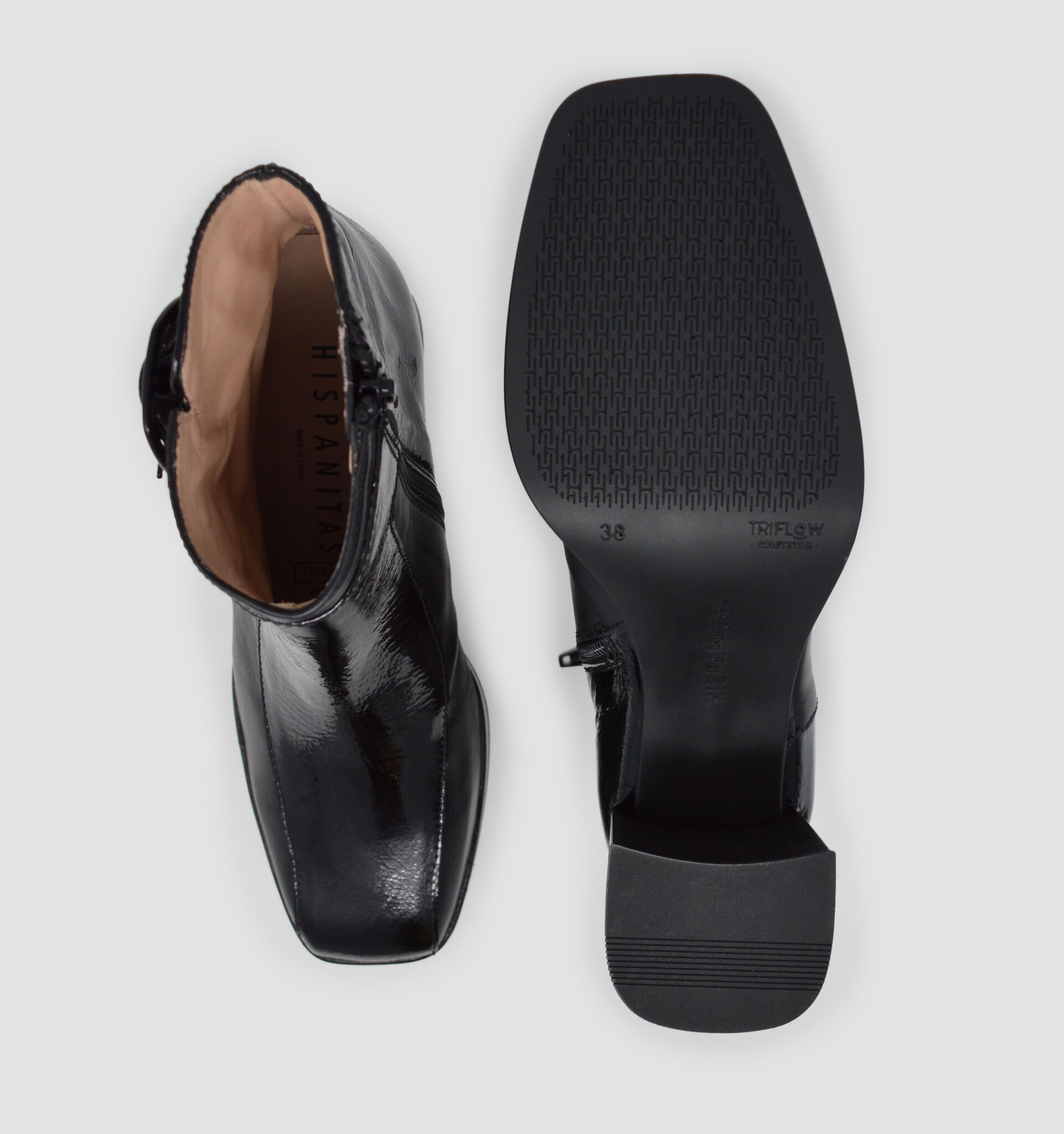 This modern take on a classic dress boot features a smooth and patent leather combination upper. With its stable squared heel, TRIFLOW cushioning technology, and side zip, this refined ankle boot is perfect for everyday and dressed up occasions alike.