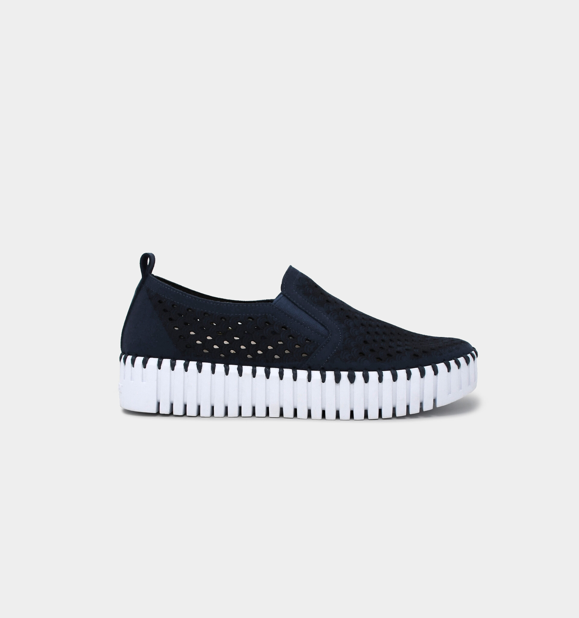 A fresh take on the beloved Tulip shoe from Ilse Jacobsen—this fun style features a platform version of the iconic Tulip outsole that is just a cushioned and flexible as the original! The laser cut microfiber upper has elastic gussets for a secure fit.