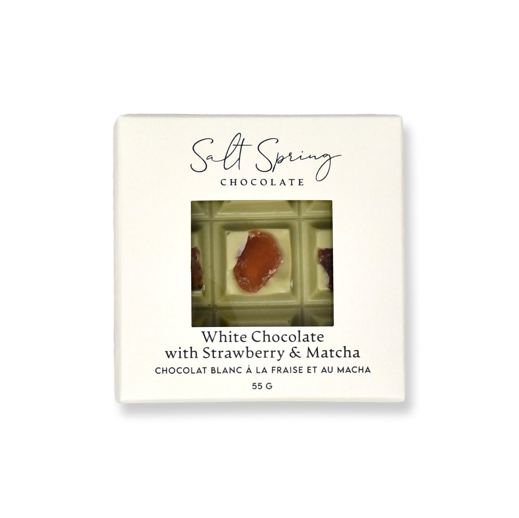 Delicious combination of white chocolate, premium matcha and candied strawberries.