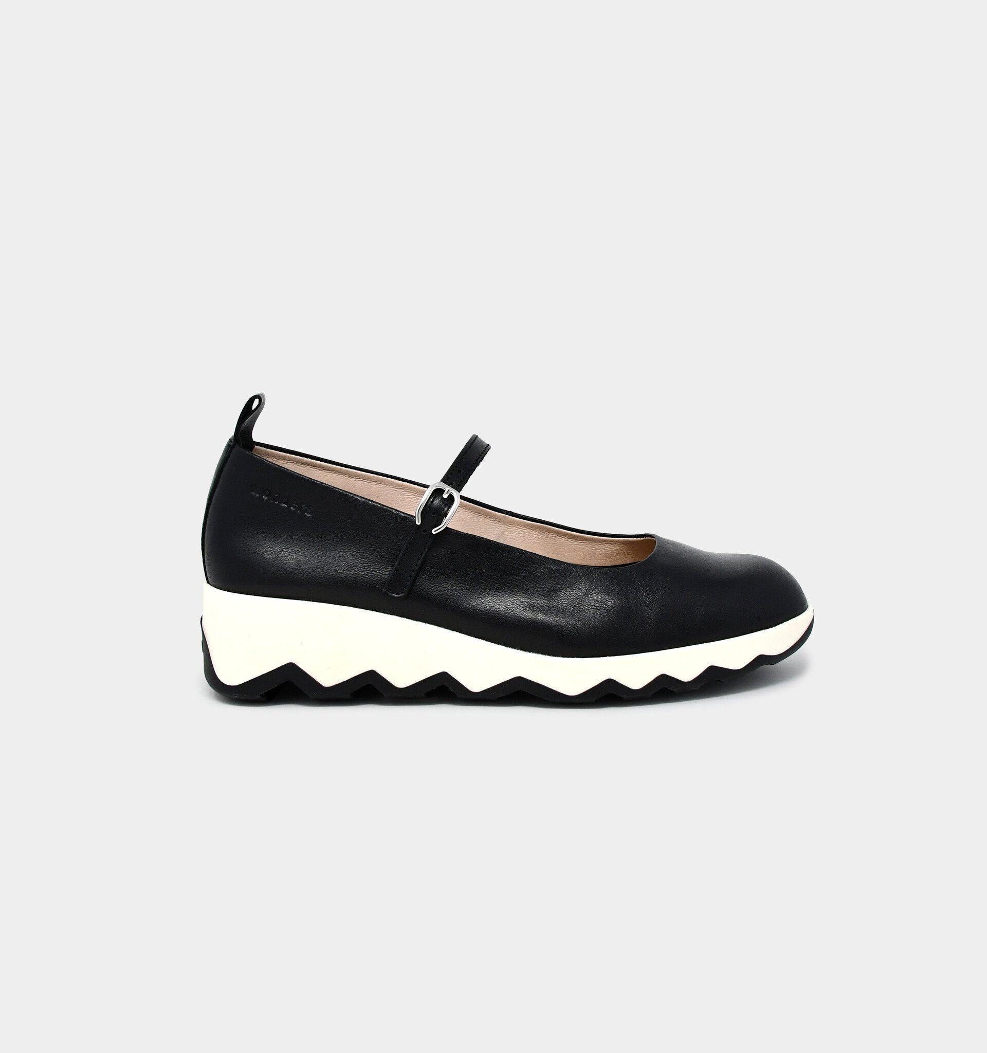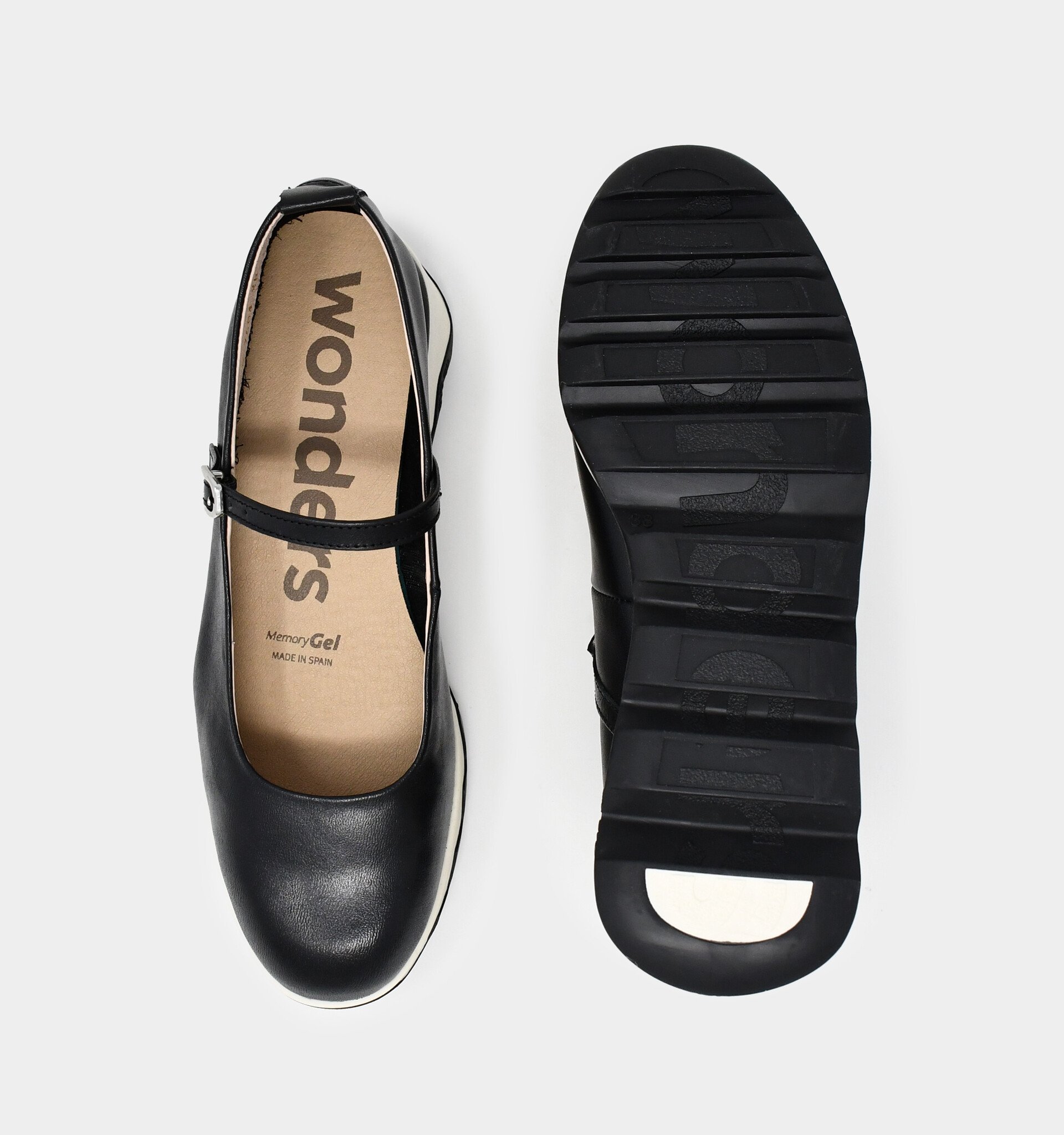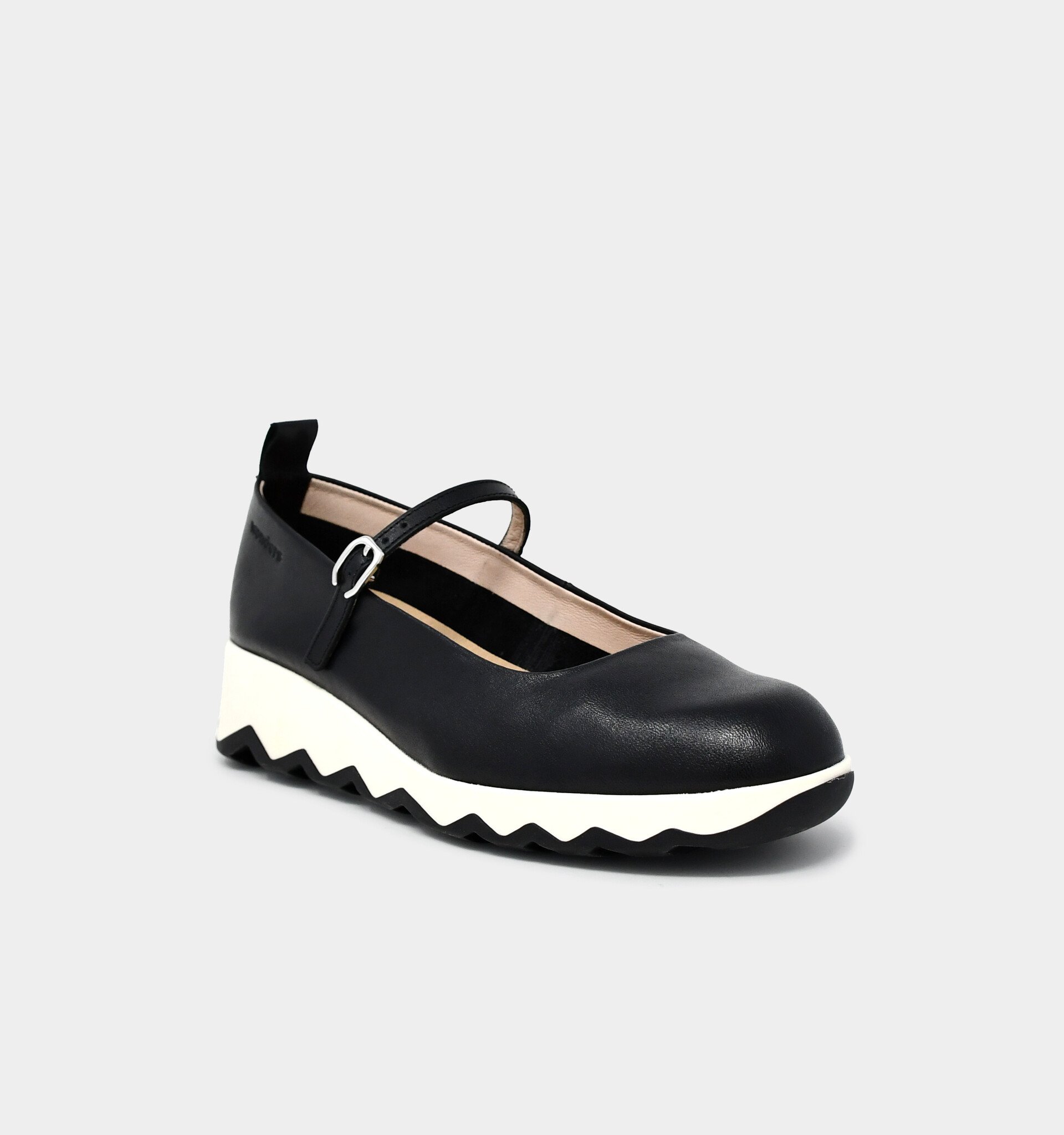 Make a statement with these funky Mary Jane wedges by Wonders! The smooth leather upper is secured by an adjustable buckle with a hidden elastic inset, and the off-white midsole contrasts playfully with the tonal rubber outsole.